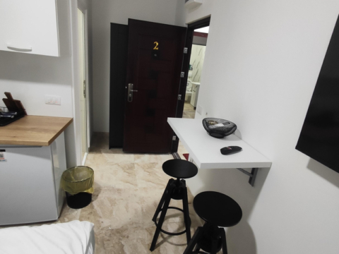 Po strukturi je studio apartman i sadrži udobnu sobu sa bračnim krevetom, garderoberom, TV-om, Wi-Fi-jem, KTV-om i klima uređajem. Kuhinja je opremljena svim potrebnim aparatima i posuđem. Kupatilo je novo, sa tuš kabinom i veš mašinom.