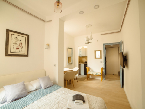 Naš apartman se nalazi u samom srcu Vračara u jednoj od najlepših ulica. Blizu je svih glavnih sadržaja-restorana, kafića, supermarketa, autobuskih stanica. Kalenić pijaca se nalazi na svega par minuta od apartmana. Takođe blizu su i neke od glavnih turističkih atrakcija Beograda. Hram Svetog Save je na svega 10 minuta a muzej Nikole Tesle na svega 5 minuta od apartmana. Apartman ima čajnu kuhinju koja je u potpunosti opremljena (tanjiri, čaše, šolje, escajg, Nespresso aparat za kafu, ketler). Kupatilo je takođe u potpunosti opremljeno (peškiri, fen za kosu, sapun, kupka, šampon, papuče).